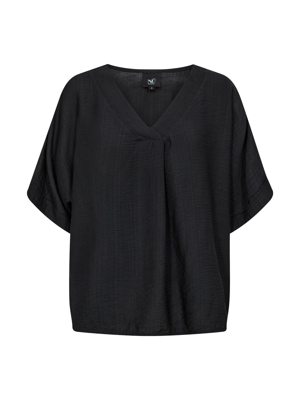 This airy blouse combines comfort and simplicity with its lightly structured material and relaxed fit. It features short, loose-fitting sleeves and a V-neckline with a decorative fold in the front, adding a soft focal point to the design. The wide sleeve edge gives the blouse a subtle lift and rounds off the relaxed look.