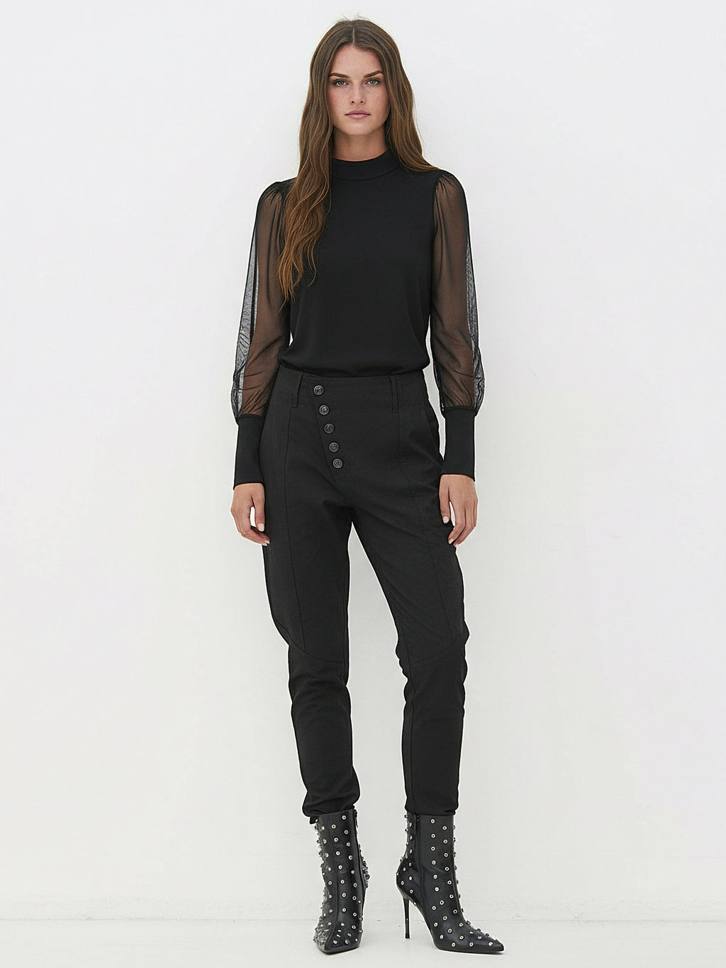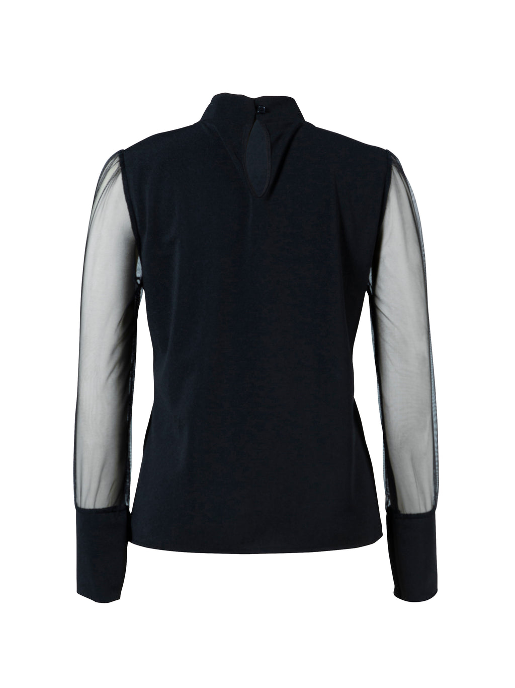 Experience the refined elegance with our long-sleeved blouse, where mesh sleeves meet wide cuffs and a discrete collar. This timeless blouse can be styled up with a sophisticated skirt for an evening look or down with jeans for a more casual occasion.