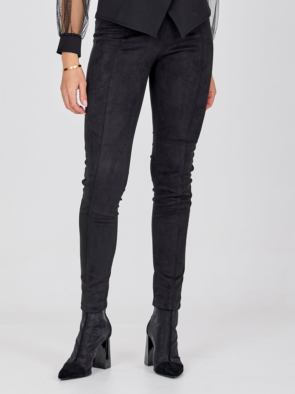 Made in an imitation suede fabric for an elegant look. These leggings are made in a light stretchy quality with an elastic waist for sublime comfort all day long. Wear them to add a nice detail to your outfit, and style them with everything from a statement T-shirt to a dress.