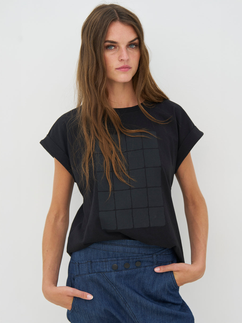 This T-shirt has a simple and modern look with short sleeves and a straight fit. The print on the front adds an edge and gives the T-shirt a distinctive look, while the back is completely simple. The quality feels comfortable against the skin and makes it suitable for both everyday wear and more relaxed looks. Style it with jeans, pants, or under a blazer for a casual yet polished look.